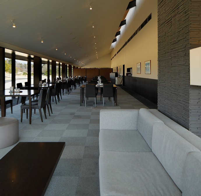 一面がガラス張りの開放感に溢れた窓から馬頭の自然、コースが一望できます。 全体的にゆったりとしたスペースの造りになっておりますのでグリーンを眺め、プレーに思いを馳せながらのんびりお食事をおとりいただけます。 当レストランのメニューは地産地消を心がけた食材を使用し、栃木の恵みを感じられる献立になっております。 宴会スペースもございますのでプレー後の表彰式・懇親会等にもご利用いただけます。
