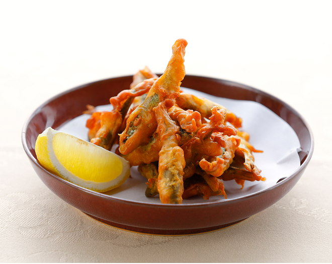 那珂川町の特産品を唐揚げにしました。ホンモロコは繊細な味わいで栄養価も高く関西地方では高級食材として食べられています。