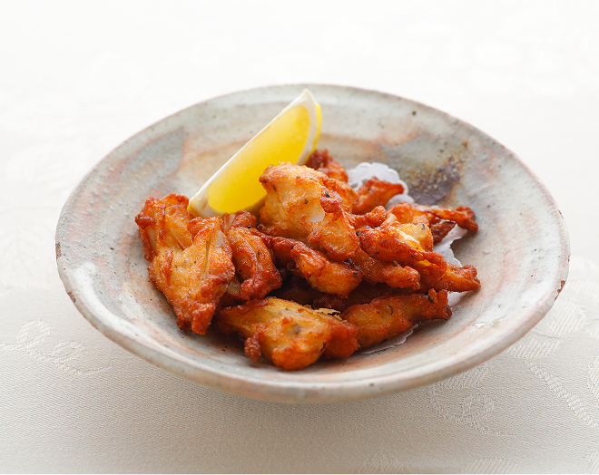 カラッと揚げた軟骨にキュッとレモンを絞って